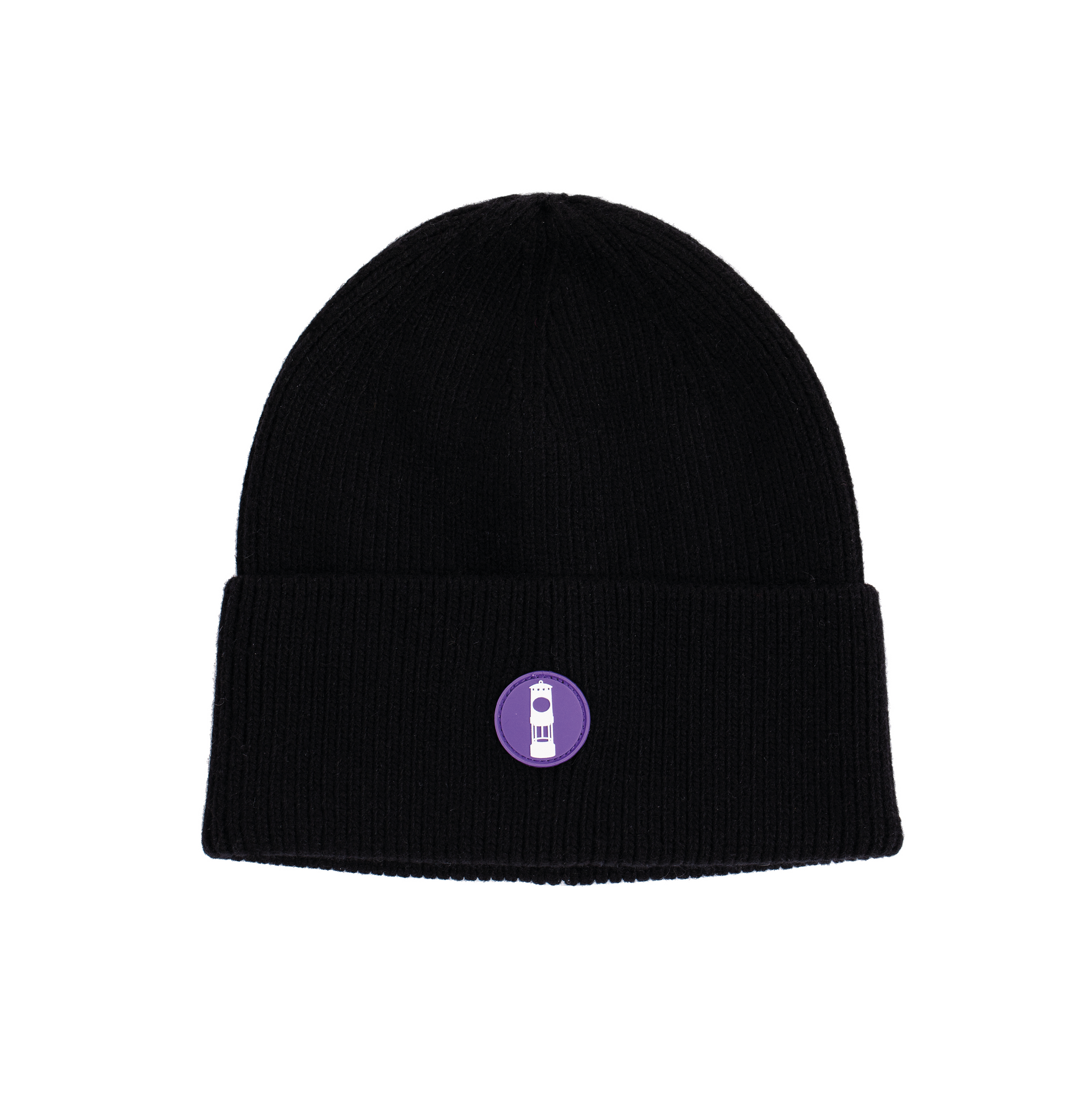 The Dock Beanie Hat in Black Beauty is made from ribbed striped 100% Organic Cashmere. The beanie hat is concluded with a ‘Cambrian Type No.1 Miners Safety Lamp’ logo patch.