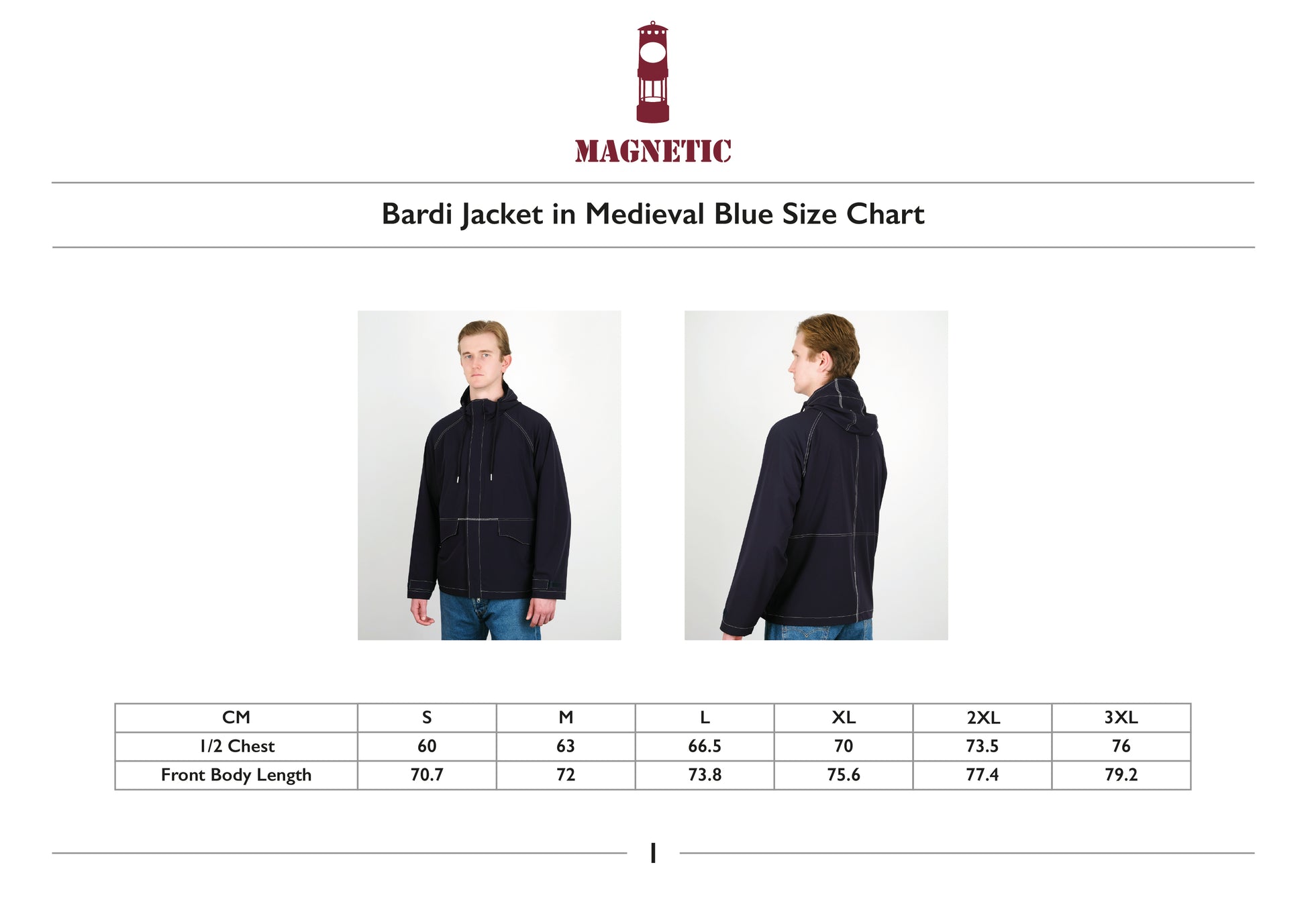 The Bardi Jacket in Medieval Blue is crafted from 100% recycled polyamide. It features a grown-on peak hood with adjustable drawstrings, two shaped pocket flaps fixed at the side seams, and contrasting white stitching throughout. The jacket is finished with two internal patch pockets, with the Genoa Poste Italiane graphic used as a label on the wearer’s left-hand side.